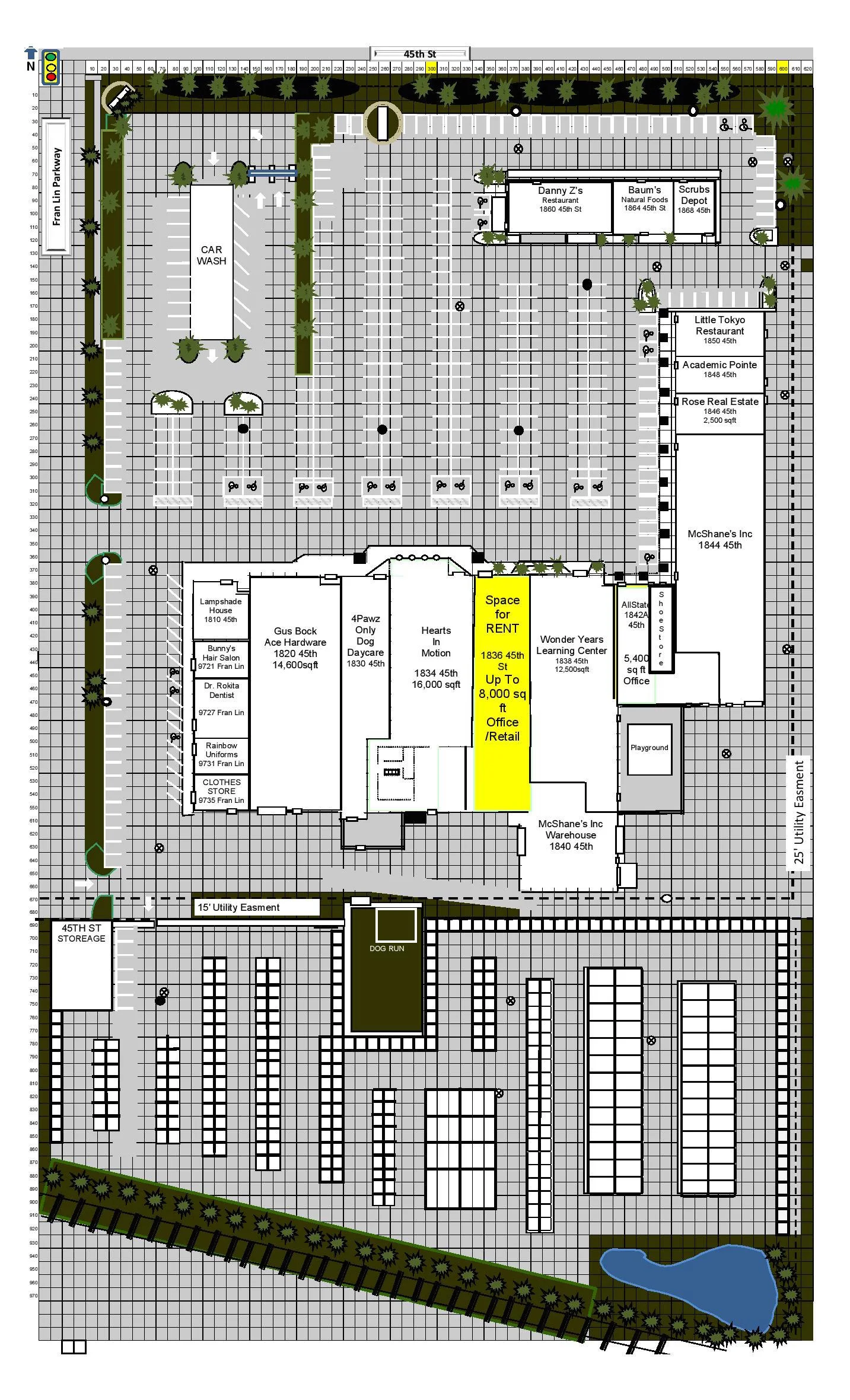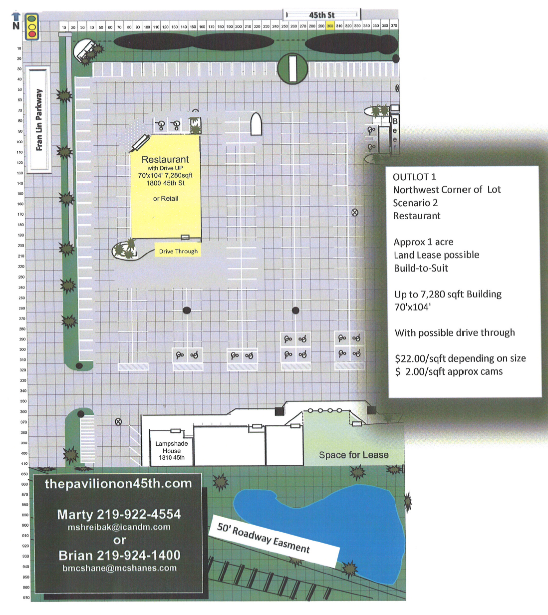 With over 100,000 square feet of retail and office space, The Pavilion on 45th offers 1,650 to 40,000 square feet spaces available for lease in addition to the construction of possible outlots.